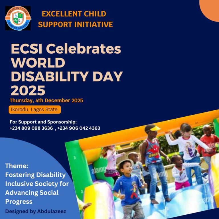 Excellent Child Support Initiative (ECSI) is proud to announce its celebration of World Disability Day 2025, taking place on Thursday, 4th December 2025 in Ikorodu, Lagos State.